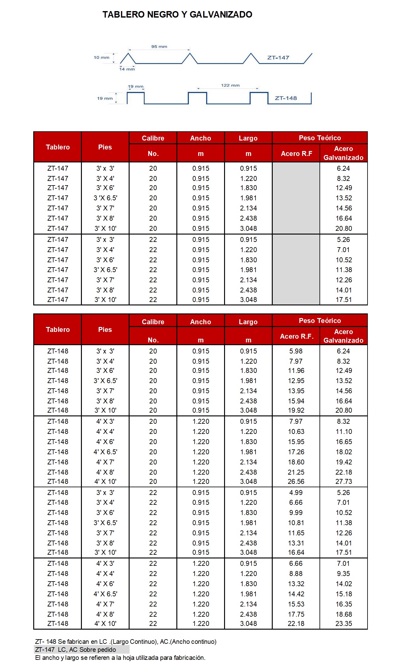Tablero negro y galvanizado ZT-148 y ZT-147 Este perfil tiene